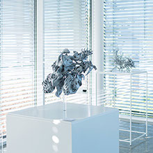 Im Anschluss zur Art Fair Köln veranstalteten wir am 29. November eine Vernissage, bei der wir die 3D-gedruckten Plastiken des belgischen Künstler Nick Ervinck präsentierten, dessen Arbeiten bereits im Rahmen zahlreicher nationaler und internationaler Ausstellungen gezeigt wurden, u.a. bei MOCA Shanghai, MAMA Rotterdam, in der Hermitage Amsterdam, bei der Creative World Biennale Rio De Janeiro und Oklahoma sowie der Highlight San Francisco. Demnächst sind seine Werke im Centre George Pompidou in Paris zu bewundern. Angeregt und inspiriert durch den Spannungsbogen zwischen der digitalen und der realen Welt erforscht der Bildhauer Nick Ervinck die Grenzen moderner Ausdrucksformen. Er setzt dazu auf digitale Werkzeuge und den 3D-Druck, um das ästhetische Potential seiner Skulpturen immer wieder neu zu erforschen, wodurch ein faszinierender Umgang mit dem Thema „Raum“ wahrnehmbar wird. Nick Ervincks Arbeiten, die u.a. von Henry Moore oder Hans Arp inspiriert werden, pendeln, auf der Suche nach utopischen Regionen, zwischen Statik und Dynamik. Die Faszination vieler seiner Werke entsteht dabei vor allem durch den Einsatz des 3D-Drucks, der es erst möglich macht, seine komplexen digitalen Modelle in die reale Welt zu überführen.