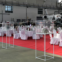Auf Einladung der schweizerischen Privatbank Pictet veranstalteten wir im Hangar der Business-Jet-Airline 'DC Aviation' bei einem exklusiven Business Event eine Kunstausstellung mit 3D-gedruckten Werken der international renommierten Künstler Nick Ervinck, Lionel T. Dean, Neri Oxman, Janne Kyttanen und Francis Bitonti.